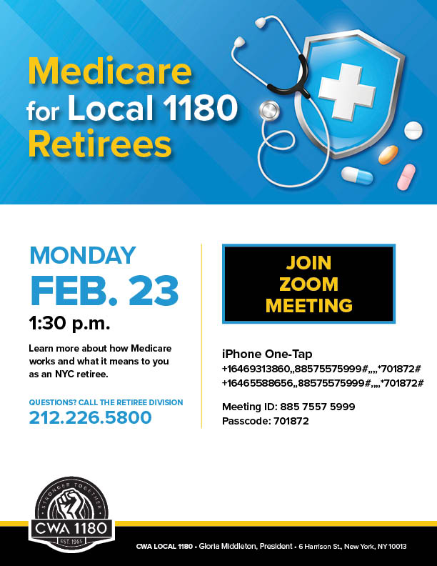 | Tues. 2/17 | IN-PERSON Review of Online Lessons / Q&A | 6 Harrison St. Call the Retiree Division to reserve your spot today: 212.226.5800 |